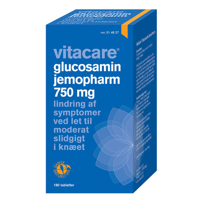 VitaCare Glucosamin JemoPharm 750 mg. med 180 tabletter, er et lægemiddel til lindring af symptomer ved let til moderat slidgigt i knæet