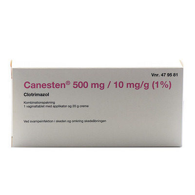 Canesten er et håndkøbslægemiddel, med det aktive lægemiddelstof Clotrimazol. Canesten kombipakke indeholder en vaginal tablet (stikpille) og 20 g creme, hvormed du kan behandle både indvendig og udvendig svampeinfektion.