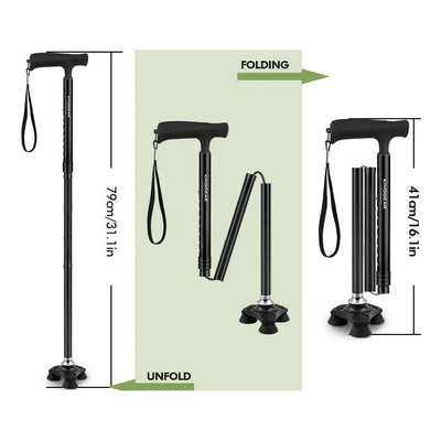 Justér Nygaard Tønder Sammenklappelig Trefodsstok Sort til den ønskede højde. Brug stokken som støtte i hverdagen, ved gang indendørs og udendørs. Fold den sammen og opbevar den i taske eller ved siden af stolen, når den ikke er i brug.