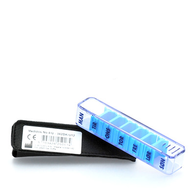 Denne smarte medicindoseringsæske er lille og praktisk. Æsken er inddelt i syv forskellige rum, et for hver dag i ugen, hvor man kan dosere den daglige mængde piller. Medidos No. 4U Leatherette har praktiske skillerum, som nemt kan flyttes for at gøre det enkelte rum større eller mindre. Siden af medicindoseringsæsken er desuden markeret med de enkelte ugedage.