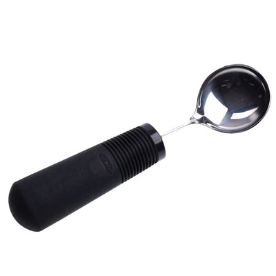 Skeen fra Oxo Good Grips har en højere kant end en almindelig ske, og derfor er den specielt velegnet for folk der ryster lidt.