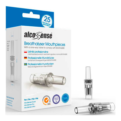 AlcoSense professionelle mundstykker er designet til præcise og hygiejniske alkoholmålinger. De er kompatible med AlcoSense Excel, Pro og Ultra alkometre og lever op til de strenge EN16280- og NF-standarder. Mundstykkerne er individuelt forseglede og udstyret med en envejsventil, der forhindrer genindånding af dampe fra tidligere tests.