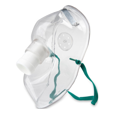 Montér masken på forstøvningssættet som beskrevet i brugsanvisningen til inhalatoren. Sørg for, at masken slutter tæt om barnets næse og mund. Vask masken med varmt vand efter brug. Må ikke koges eller autoklaveres.