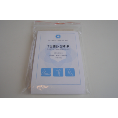 Tube-Grip bandage er en elastisk bandage, som kan bruges til både arme, ben og fødder. Den skaber en svag og behagelig kompression til kroppen. Bandagen er rundstrikket og nem at anvende. Bandagen kan anvendes som et beskyttende overtræk til gipsbandager, da det kan holde sammen på gipsen ved små knæk og revner. Tube-Grip kan også benyttes som natbandage for at skabe støtte og hvile til kroppen. Hvis du ønsker en øget kompression kan bandagen med fordel lægges dobbelt.