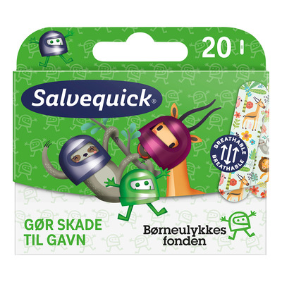 Salvequick Børneulykkesfonden indeholder 20 charmerende plastre, som er sårpleje, der gør en forskel for mange