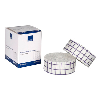 Abena Fikseringstape måler 10 m x 2,5 cm og er en hudvenlig tape til sikker og fleksibel fiksering