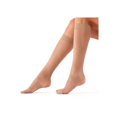 Disse støttestrømper i knælængde fra Viva er lavet med medium kompression på 70 den (12 mmHg), hvilket betyder, at elastomeren er tungere. De har desuden kompression på 12 mmHg ved anklerne for at forhindre hævelse i ankler og fødder. Derudover er støttestrømperne indikeret til behandling af cellulite. Viva70 Knæ Natural er fremstillet af 83% polyamid og 17% elasthan samt har en naturlig farve.
