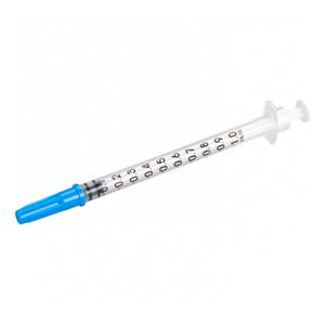 Vitrex Insulinsprøjte med penkanyle, 29 G x 1/2", 1 ml, er en steril engangssprøjte udviklet til subkutan injektion af insulin. Den kombinerer en 1 ml sprøjte med en fastmonteret kanyle, hvilket giver en praktisk og hygiejnisk løsning til daglig brug. Nålen har en diameter på 29 gauge og en længde på ½ tomme (ca. 12,7 mm), som muliggør en præcis og skånsom administration. Sprøjten er fremstillet af medicinsk plast og leveres i steril emballage.