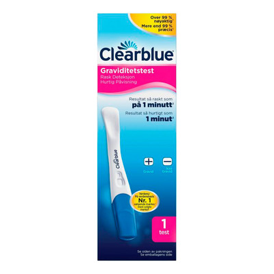 Clearblue Graviditetstest er den ideelle løsning for dig, der ønsker hurtig og sikker bekræftelse på graviditet. Denne pålidelige test er designet til at give dig klare og præcise resultater, så du hurtigt kan få svar på dine spørgsmål omkring graviditet. Graviditetstesten kan påvise graviditet inden for 1 minut, når du tester fra dagen for udeblevet menstruation, mens du bør vente 3 minutter fra at bekræfte et "ikke gravid" resultat. Clearblue Graviditetstest viser et resultat med over 99% nøjagtig fra den dag, du forventer din menstruation.