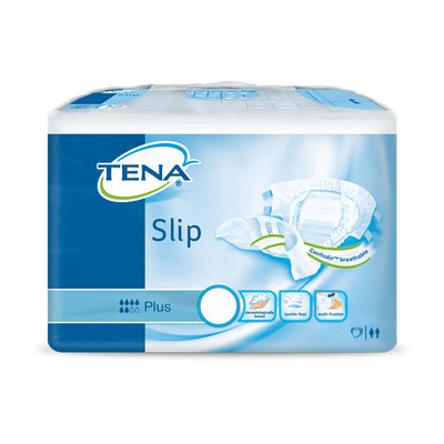 TENA Slip Plus ProSkin er designet til at give maksimal beskyttelse og komfort til personer med moderat til svær inkontinens. Disse bleer har en hurtigabsorberende kerne, der effektivt indkapsler fugt og holder huden tør og sund. Det bløde, tekstillignende materiale føles behageligt mod huden, og de justerbare velcrolukninger sikrer en sikker og personlig pasform. Med Triple Protection mod lækager, lugt og fugt kan du være tryg hele dagen. TENA Slip Plus ProSkin er nemme at skifte og ideelle til både dag- og natbrug.