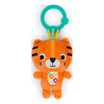 Bright Starts Lad os rangle Tiger er let at tage med og kan fastgøres til barnevogn, pusletaske eller aktivitetsstativ med den praktiske ring. Den kompakte størrelse gør den ideel som rejseven og oplagt som gaveidé til babyer fra 0-3 år.