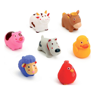 Lüdi Badedyr – Bondegårdsdyr er designet til at gøre badetiden sjovere og mere interaktiv. Sættet indeholder syv klassiske bondegårdsdyr, som kan sprøjte med vand og skabe sjov leg i badekarret. Dyrene er formet som høne, and, hund, hest, pony, ko og gris, og de har hver deres udtryk og farve, som gør dem lette at genkende for barnet.