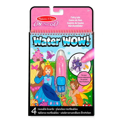Melissa and Doug Water Wow Eventyr er en kreativ malebog med otte genanvendelige sider og en medfølgende vandpen. Når børn maler med vand, afsløres farverige scener med prinsesser, slotte og feer. Når siderne tørrer, vender de tilbage til deres oprindelige udseende og kan bruges igen og igen. Den særlige røde linse afslører skjulte detaljer og gør legen ekstra spændende.