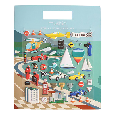 Mushie Reusable Sticker Set - Race Cars kombinerer læring og leg for børn fra 3 år