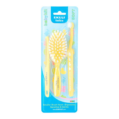 Ekulf Twice Babykit indeholder både tandbørste, hårbørste og kam.