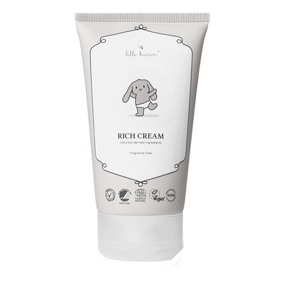 Lille Kanins fede creme kommer i en luftfri tube, som er med til at bevare den høje kvalitet under brug. Emballagen er desuden lavet af genanvendelige materialer, og cremen er dermatologisk testet. Produktet bærer også følgende certificeringer: Allergy Certified, Svanemærket, EcoCert Cosmos og Vegan Reg. Trademark.