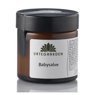 Urtegaarden Babysalve er en smidig og fløjlsblød salve til babyens sarte hud.