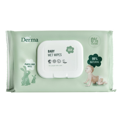 Derma Baby Vådservietter er bløde, behagelige og allergivenlige vådservietter, som er særligt velegnede til sart babyhud