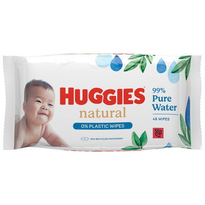 Huggies Wipes Natural 0% Plast Pure er hudvenlige og miljøbevidste servietter, som er gode på farten eller hjemme