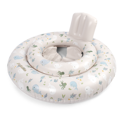 Filibabba Babybadering er en oppustelig badering med et praktisk sæde og ryglæn, der giver din baby støtte og komfort under vandlegen. Ringen pustes op via en sikkerhedsventil, der trykkes ind i ringen, så den ikke generer under brug.
