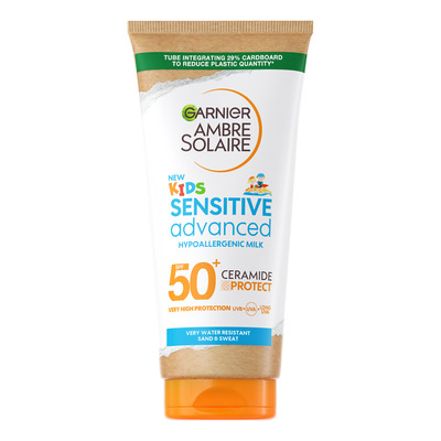 Ambre Solaire Sensitive Advanced Kids Lotion SPF 50+ fra Garnier er en hypoallergen og parfumefri sollotion til børn. Den er specielt udviklet til børns sarte hud og er desuden både vandresistent, samt sved- og sandafvisende. Lotionen kan bruges både i ansigtet og på kroppen, der giver en høj solbeskyttelse mod UVA- og UVB-stråler. Desuden er solcremen beriget med ceramider, der styrker hudbarrieren.