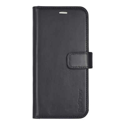 RadiCover Mobilcover i sort læder består af to dele: et aftageligt, magnetisk indre cover og et ydre flipcover. Det indvendige cover beskytter telefonen mod stød og kan fastgøres til f.eks. bilholder. Mobilcoveret er også kompatibelt med trådløs opladning.