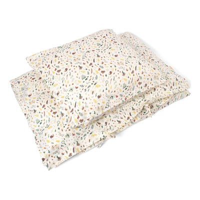 Filibabba Babysengetøj GOTS Dreamers fanger børns opmærksomhed med sine forskellige natur-motiver og en bred farvepalette, der tilfører liv og drømmende dybde til ethvert børneværelse. Sengetøjet er fremstillet af 100% økologisk, GOTS-certificeret, satinvævet bomuld, der giver en ekstraordinær blødhed og komfort. Inkluderet er et dynebetræk og et hovedpudebetræk i babystørrelse, begge med holdbare YKK lynlåse. Der er også inkluderet en matchende stofpose til alsidig brug, hvormed Filibabba understreger værdien af genbrug og kreativitet i børnepleje.