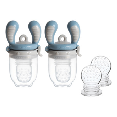 Silikonetudene er selvfølgelig 100% BPA frie og Food Feederen er med ergonomisk håndtag, så det er lettere for barnet selv at holde den i en tidlig alder. Fyld silikonetuden med mad i små stykker eller mos, og lad selv barnet styre måltidet. Det træner barnets motoriske evner og hånd-øje koordination. Hvis Food Feederen skal med på tur bruges den medfølgende hætte for beskyttelse af maden.