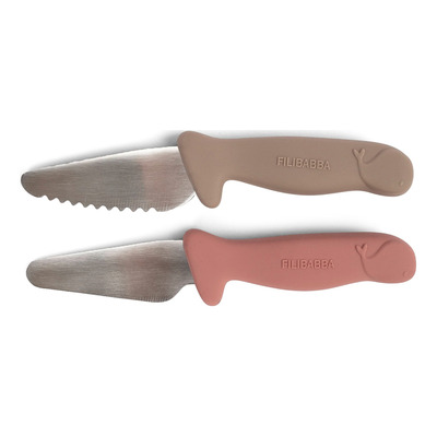 Filibabba Knivsæt til børn i farverne Warm Grey + Rose kommer med 2 knive, der gør det muligt for børn at hjælpe til