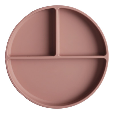 Mushie Silikone Tallerken Rumdelt i farven Cloudy Mauve har en praktisk sugekop under bunden og rumopdeling