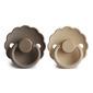 FRIGG Daisy Rund Latex Croissant/Portobello er en 2-pak med elegante sutter i blomsterformet design