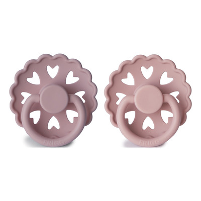 Denne 2-pak med sutter fra FRIGG er en del af Fairytale-kollektionen, som er inspireret af H.C. Andersens magiske eventyr. Sutterne er med deres fine kanter inspirerede af H.C. Andersens papirklip samtidig med, at de 8 små hjerter i silikone-skjoldet symboliserer kærlighed og omsorg. FRIGGS Fairytale-sutter har en tut der, med sin runde brystvorteform, ligger godt i munden på barnet, idet den ligner mors bryst i både form og materiale. Denne form for sut anbefales af pædiatriske fagfolk i Danmark.