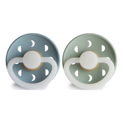 FRIGG Moon Phase Rund Latex Stone Blue Night/Sage Night er en 2-pak med smarte natsutter, der kan lyse i mørket