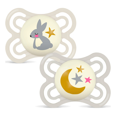 MAM Perfect Night Silk 0-6m Box Neutral er en natvenlig sut med blød silikone og lys