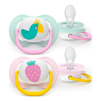 Philips Avent Sut Ultra Air 0-6 m har ekstra store lufthuller i skjoldet, der ventilerer huden og holder den tør under brug. Skjoldet og opbevaringsæsken er fremstillet af 80 % plantebaseret materiale. Opbevaringsæsken fungerer også som sterilisator i mikrobølgeovnen. Pakken indeholder to sutter i farverne grøn og lilla med dekorative motiver.