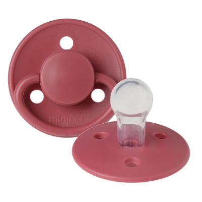 Mininor Silikonesut 12+ mdr. Rabarber er en klassisk rund sut i medicinsk silikone til babyer fra 12 måneder