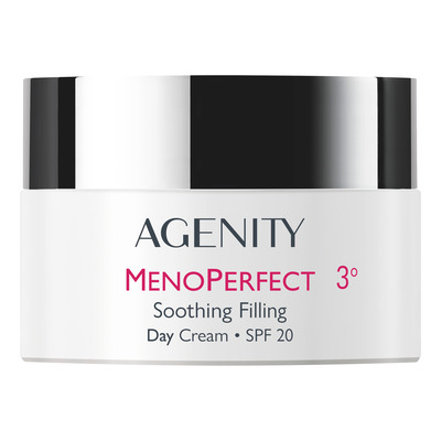 AGENITY MENOPERFECT 3° Day Cream SPF20 er en opstrammende og udfyldende dagcreme udviklet til hud i overgangsalderen, hvor hormonelle ændringer fører til tab af fylde, elasticitet og komfort. Cremen forbedrer hudens fasthed og genskaber volumen med sheasmør, FGF1 LMS™-teknologi og rapeolie-steroler.