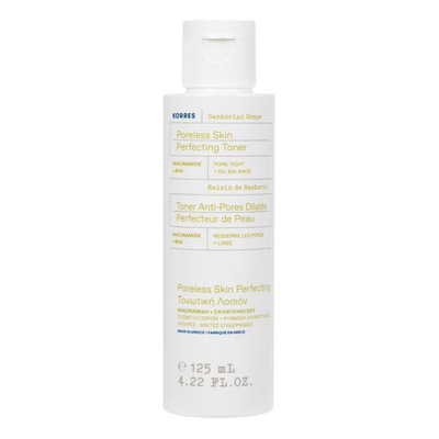 Korres Santorini Poreless Skin Perfecting Toner er desuden beriget med Santorini-drueekstrakt, som er rig på antioxidanter og tanniner og hjælper med at minimere synlige porer og regulere talgproduktionen. Produktet indeholder 88,3 % ingredienser af naturlig oprindelse og er dermatologisk testet.