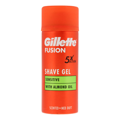 Fugt huden, påfør en lille mængde af Gillette Fusion Sensitive Shave Gel. Kan anvendes sammen med barbermaskiner, der tillader det og skraber. Denne gel sikrer en glat og komfortabel barbering, der beskytter sensitiv hud. Skyl efter med vand for at fjerne rester.
