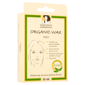 De smarte voksstrimler i Hanne Bangs økologiske ansigtsvoks sikrer nem, hurtig og effektiv fjernelse af uønsket hårvækst i ansigtet. Hårvæksten fjernes med rode og huden efterlades helt glat og blød i op til 4-6 uger. Desuden indeholder pakken en økologisk azulenolie til plejende efterbehandling af huden. Olien fjerner eventuelle voksrester og virker kølende og beroligende på huden.