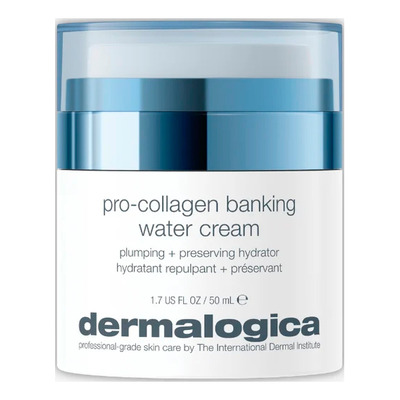 Dermalogica Pro-Collagen Banking Water Cream er en let gel-creme med water-burst-teknologi, der aktiveres ved kontakt med huden og frigiver mineralrigt marint kildevand. Formlen indeholder et peptidkompleks med kollagenamino-syrer, zinkglycinat og carnosin-dipeptid, som modvirker oxidativt stress og bidrager til at bevare hudens egne kollagen- og elastinfibre. Hyaluronsyre og biofermenteret reddikrodekstrakt tilfører dybdegående fugt og støtter hudens beskyttende barriere.