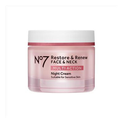 No7 Restore & Renew Multi Action Night Cream understøtter hudens naturlige reparationsproces om natten