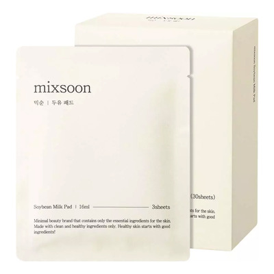 Mixsoon Soybean Milk Pad er en innovativ toner i form af tre pads, som placeres på kinder og pande, hvor huden har brug for ekstra pleje. Hver pad er gennemfugtet med fermenteret sojabønneekstrakt, rig på antioxidanter, vitaminer og mineraler, der fugter og fornyer huden. Hyaluronsyre binder fugt i huden, hvilket giver en mere glat og spændstig hudoverflade.