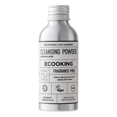 Ecooking Cleansing Powder er et kraftfuldt rensepulver med 99% naturlige ingredienser, der kombinerer dybderens med effektiv eksfoliering. Rensepulveret indeholder naturlige skrubbekorn som cellulobeads og lavasten, der fjerner døde hudceller og stimulerer blodcirkulationen, hvilket efterlader en naturlig glød. Pulveret indeholder også vitaminrigt papayafrugtekstrakt, som eksfolierer og reducerer pigmentering samt abrikosolie og havre, der forbedrer hudens barrierefunktion og lindrer irritation.