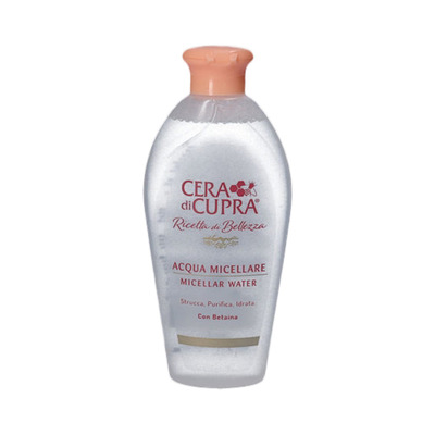 Cera Di Cupra Micellar Water er et effektivt og skånsomt produkt til fjernelse af makeup, eller hvis du blot ønsker en mild rens af huden, så den efterlades frisk og velplejet. Cera Di Cupra Micellar Water indeholder betain, naturlige sukkerarter og hyaluronsyre, som giver fugt til huden. Den indeholder endvidere gærekstrakter, som er rige på antioxidanter og beskytter huden.