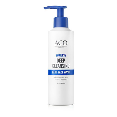 ACO Spotless Daily Face Wash er en dybderensende ansigtsvask særlig udviklet til fedtet og uren hud. Ansigtsvasken indeholder bl.a. salicylsyre, som er med til at forebygge bumser og hudorme. Den virker bakteriehæmmende, fjerner døde hudceller, renser porerne i dybden og hjælper dig med at opnå en frisk hud. Derudover indeholder den også glycerin, som tilfører fugt til huden.