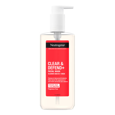 Neutrogena Clear & Defend Plus Facial Wash er en forfriskende formel, der hjælper med at rense huden og fremme et mere klar og strålende udseende. Denne ansigtsvask er baseret på en kombination af 4% AHA/PHA, der hjælper med at udjævne hudtonen og berolige synlige urenheder.
