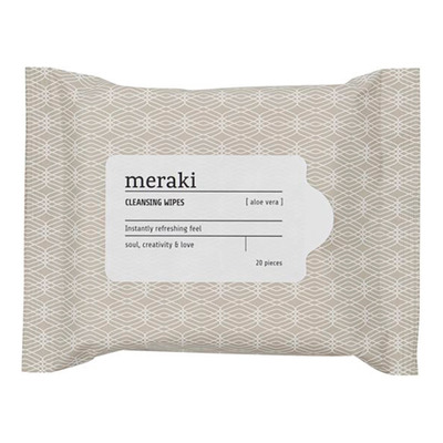 Disse renseservietter fra Meraki er beriget med aloe vera, som virker helende på huden samt kamille, der nærer og beroliger huden. Renseservietterne er nemme at have med på farten eller gode på en travl dag, hvor du ikke har tid til din almindelige ansigtspleje. Servietterne giver en dejlig opfriskende fornemmelse til huden.