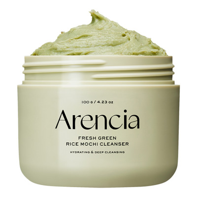 Arencia Fresh Green Rice Mochi Cleanser er en multifunktionel ansigtsrens med mochi-lignende tekstur, der både kan bruges som daglig rens og som en kort maske. Den skummes op med vand eller æltes til en blød pasta, der fordeles på huden og skylles af efter ét minut. Rensen eksfolierer skånsomt og fjerner døde hudceller, samtidig med at huden efterlades ren, frisk og afbalanceret.