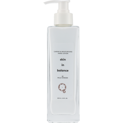 Denne hand lotion fra Balance By Mille Dinesen er en fugtgivende og plejende håndlotion. Håndlotionen trænger hurtigt ind i huden og plejer i dybden. Lotionen indeholder bl.a. hybenkerne- og mandelolie samt collagen og antioxidanter, der beskytter hænderne og efterlader dem dejlig, bløde og smidige. Håndlotionen har en dejlig, frisk og mild duft af citrus, rose, sandeltræ og lavendel.